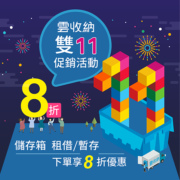 只要在11/11當天下單就可享有八折優惠的儲存箱 租借/暫存。