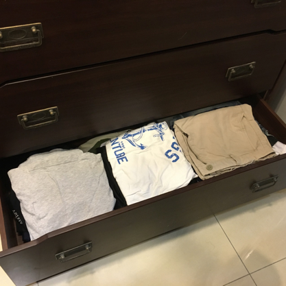 看起來衣櫃有六格的空間感覺蠻大的,但是因為沒有做好分類收納我的衣服就變成一堆抹布