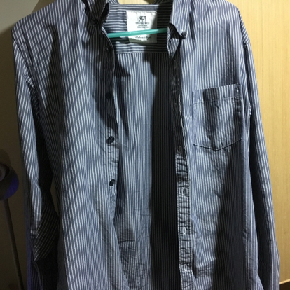 像這件藍色條紋襯衫就屬於需要掛起來的衣物,之前沒做好分類跟其他衣服擺一起就非常的皺
